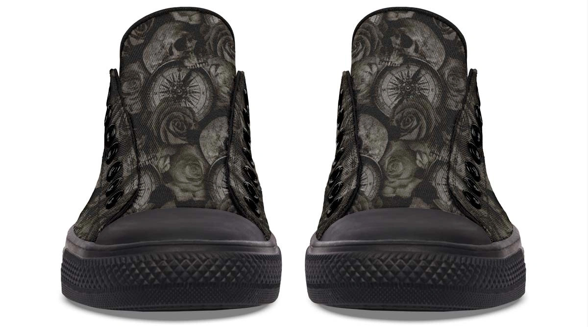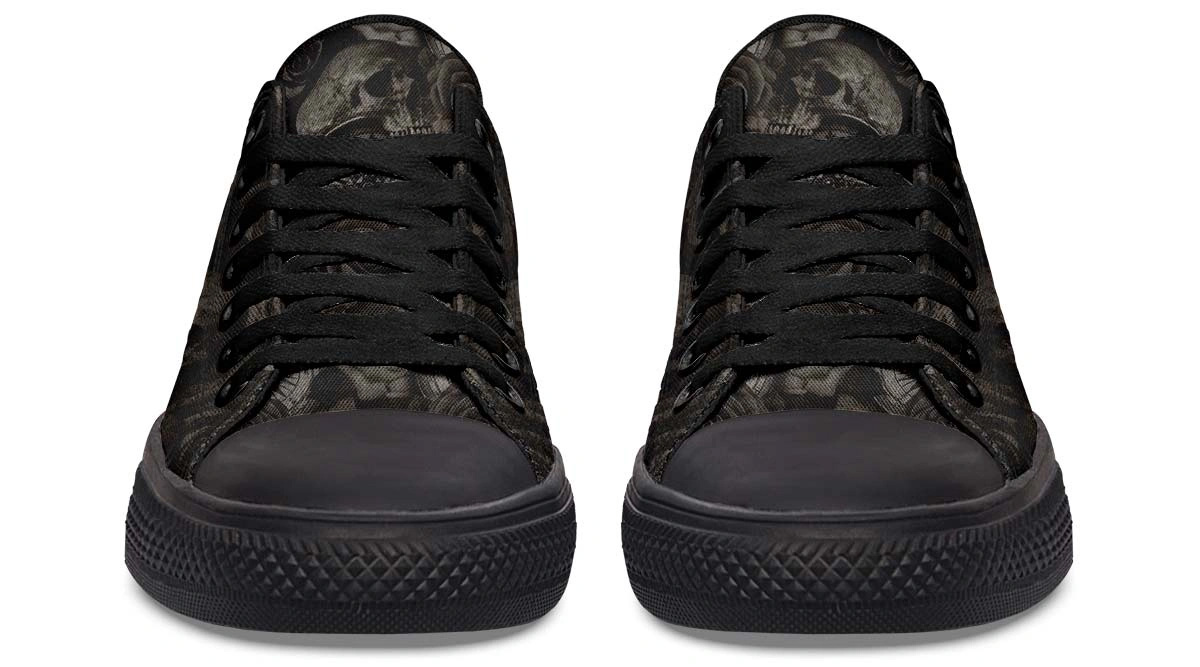Unleash your style with Death Time Low-Top Sneakers. Edgy, dark aesthetic footwear designed for comfort, durability, and bold streetwear fashion statements.