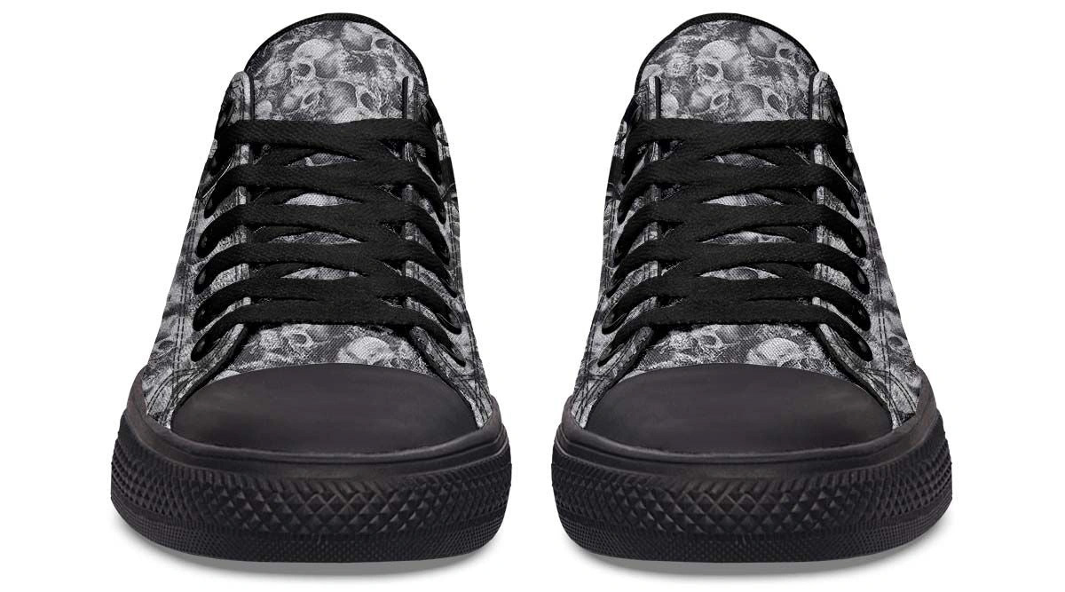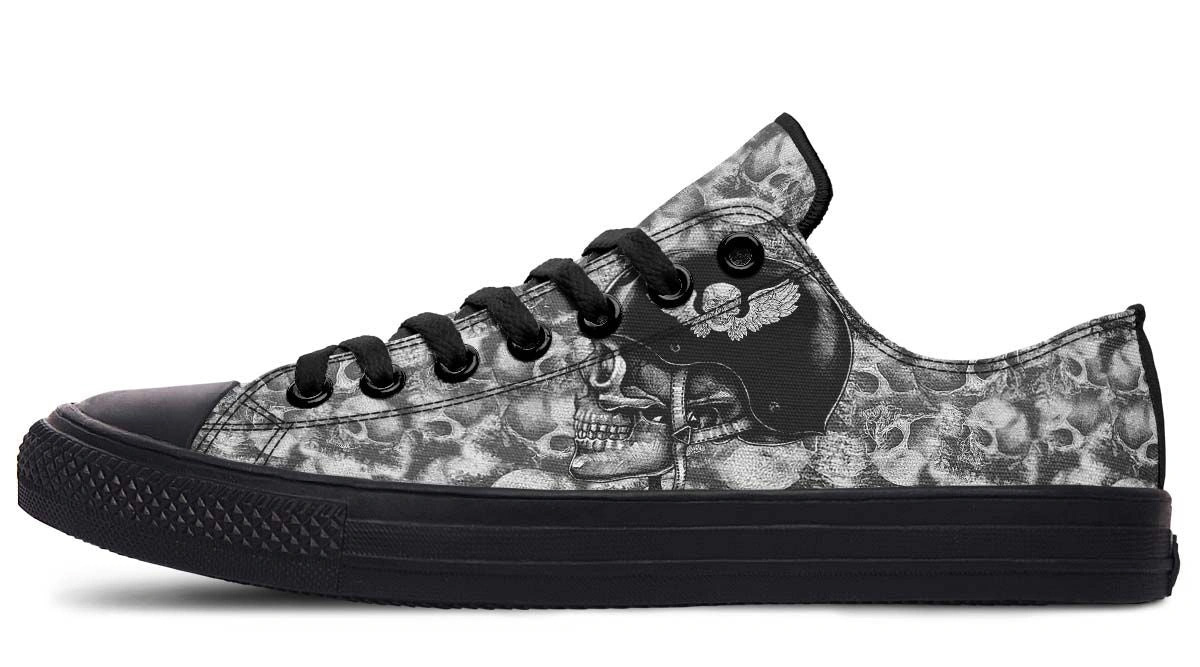 Add an edge to your look with Skull Rider Pattern Black Lowtop Sneakers. Featuring a bold skull design and cushioned insoles for all-day comfort and style.